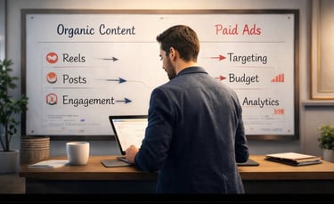 Organic content builds trust, brand identity, and long-term engagement. It allows businesses to connect authentically with their audience. However, relying solely on organic reach can be slow because of competition and algorithm limits.